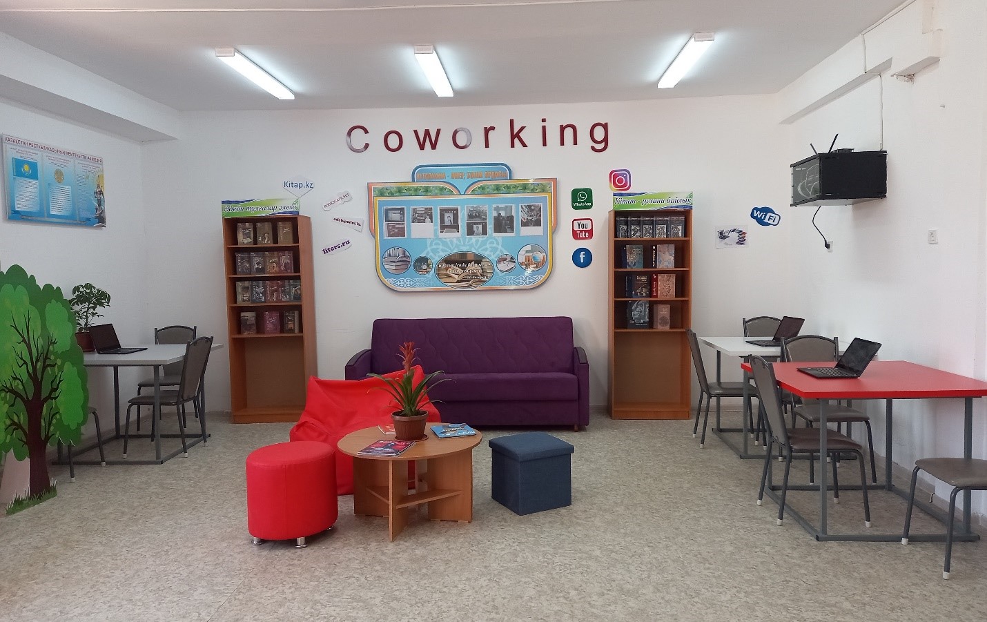 2.Кітапхана жанынан «Coworking» орталығы жабдықталып, өз жұмысын жасауда.